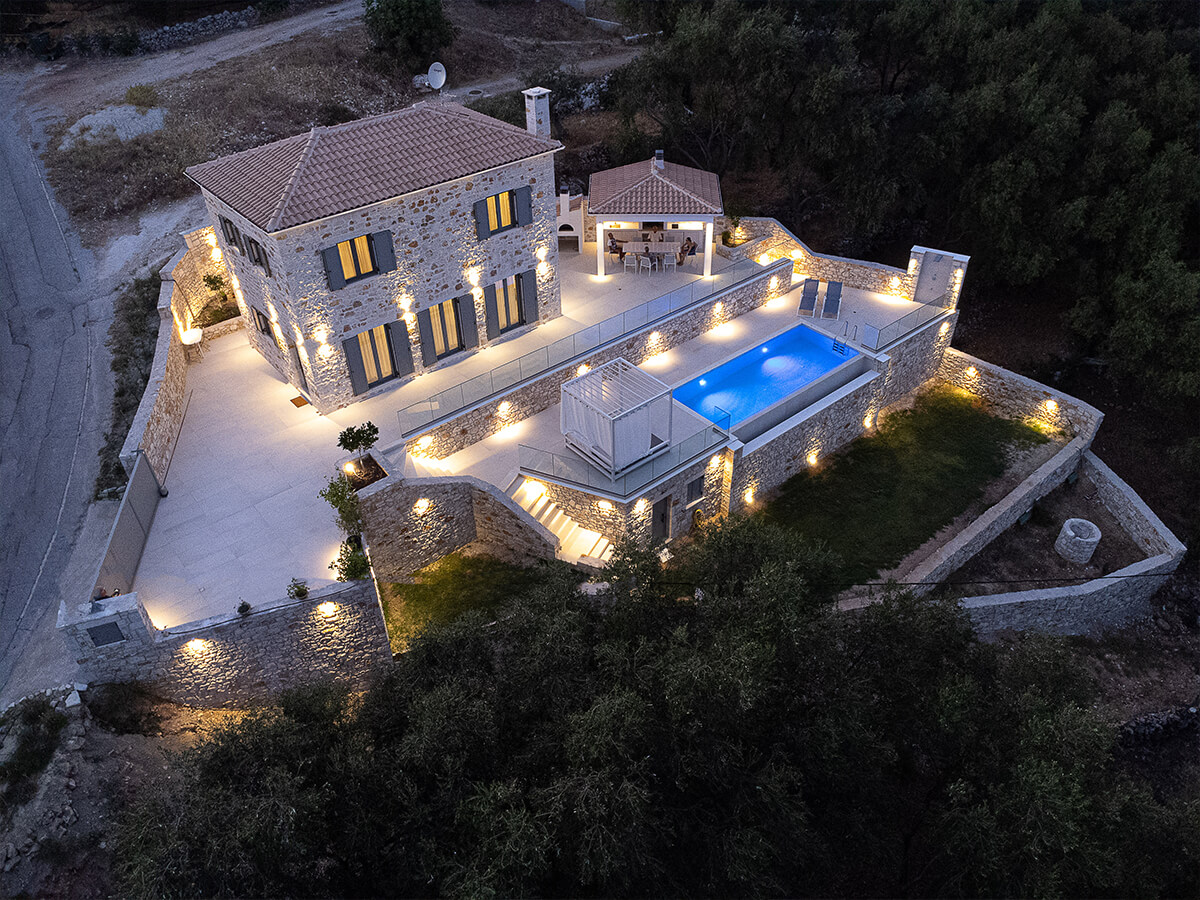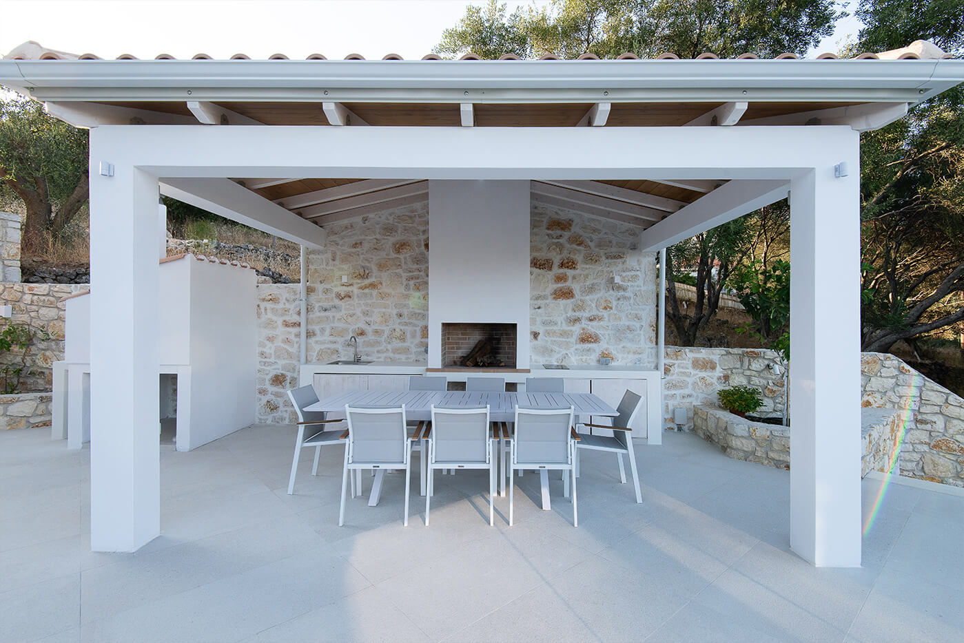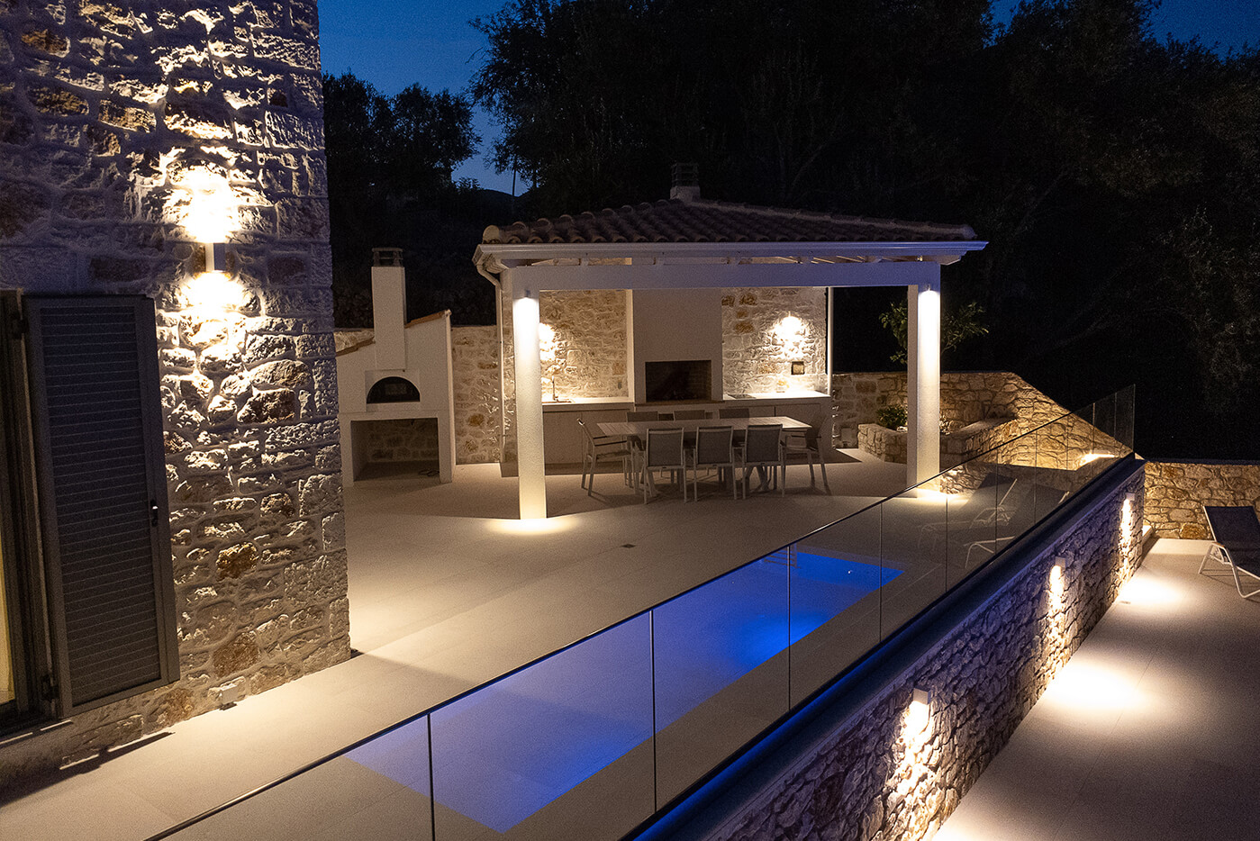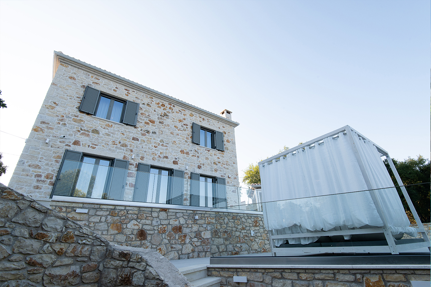 Σχεδιασμένο για να φιλοξενεί τους επισκέπτες με μια γυαλισμένη αλλά σπιτική απλότητα χάρη στην κυριαρχία της πέτρας. Σε εξωτερικούς χώρους, μια βεράντα πισίνας με ξαπλώστρες και ανάκλιντρο, μια στεγασμένη τραπεζαρία με μπάρμπεκιου και ξυλόφουρνο, καθώς και ένας όμορφος κήπος προσφέρουν μια εξαιρετική υπαίθρια εμπειρία διαβίωσης. Η βίλα είναι ιδανική για όποιον εκτιμά την ιδιωτικότητα καθώς και την ηρεμία. Designed to accommodate guests in a polished yet homey simplicity thanks to the predominance of stone. Outdoors, a pool terrace with sun loungers and a day bed, a covered dining area with BBQ and wood oven as well as a beautiful garden provide for an exceptional open-air living experience. The Villa is ideal for anyone who appreciates privacy as well as serenity.