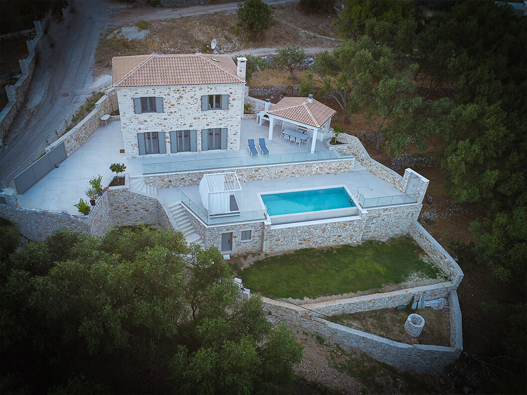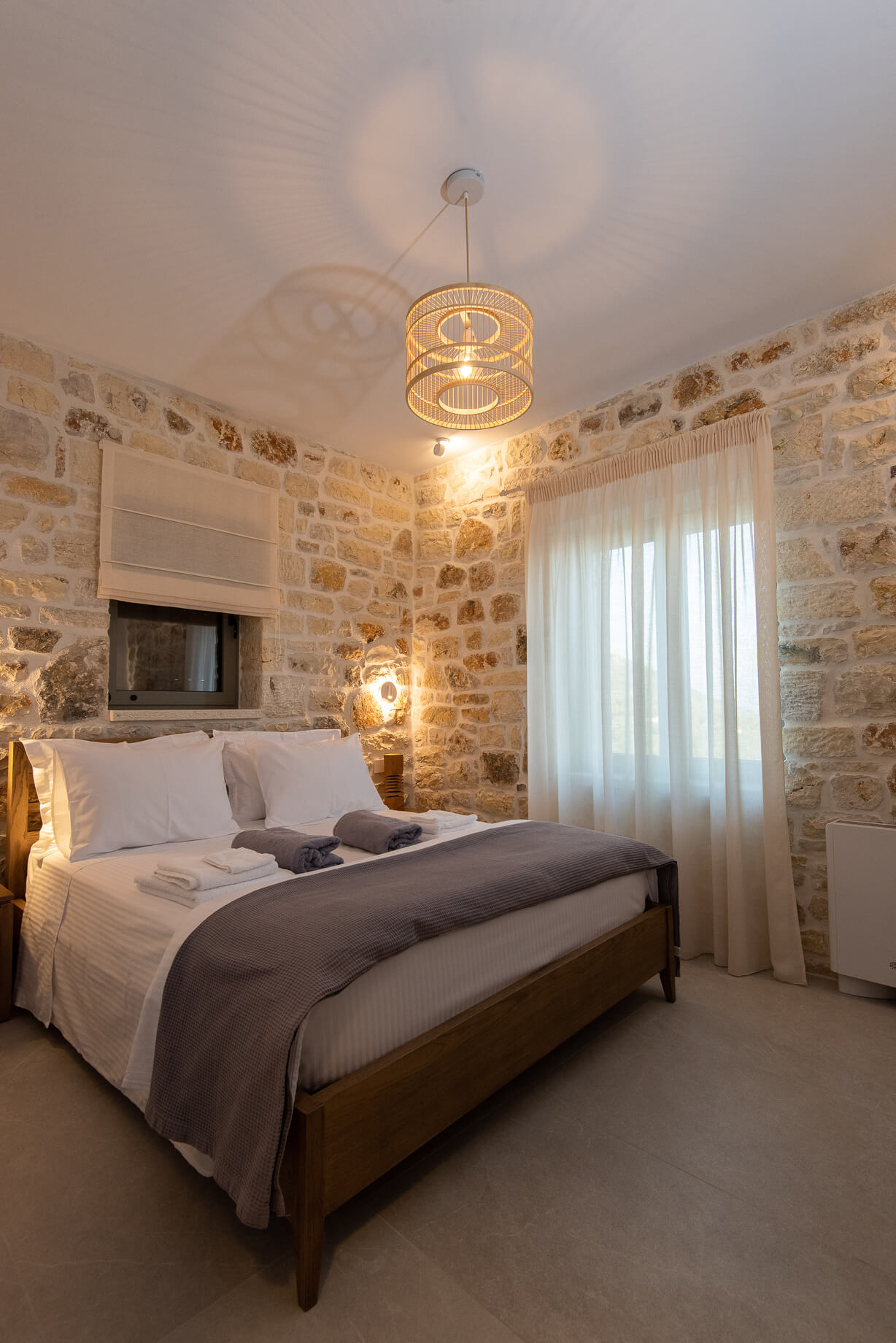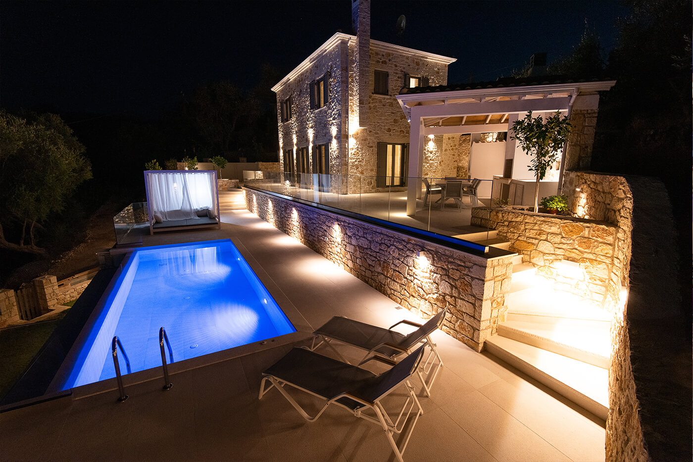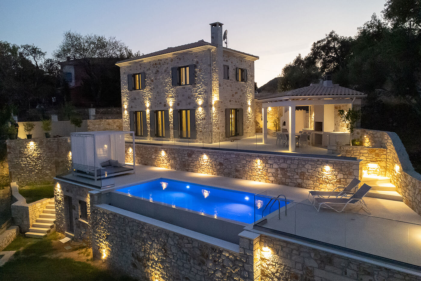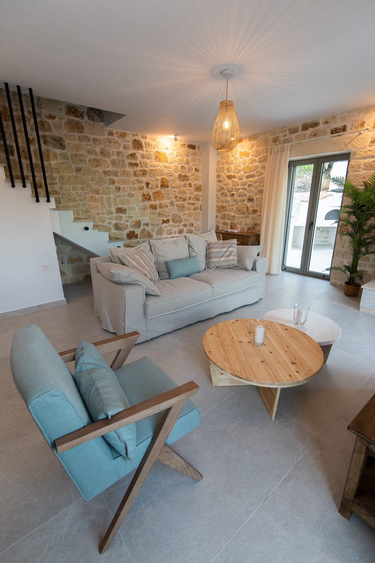Σχεδιασμένο για να φιλοξενεί τους επισκέπτες με μια γυαλισμένη αλλά σπιτική απλότητα χάρη στην κυριαρχία της πέτρας. Σε εξωτερικούς χώρους, μια βεράντα πισίνας με ξαπλώστρες και ανάκλιντρο, μια στεγασμένη τραπεζαρία με μπάρμπεκιου και ξυλόφουρνο, καθώς και ένας όμορφος κήπος προσφέρουν μια εξαιρετική υπαίθρια εμπειρία διαβίωσης. Η βίλα είναι ιδανική για όποιον εκτιμά την ιδιωτικότητα καθώς και την ηρεμία. Designed to accommodate guests in a polished yet homey simplicity thanks to the predominance of stone. Outdoors, a pool terrace with sun loungers and a day bed, a covered dining area with BBQ and wood oven as well as a beautiful garden provide for an exceptional open-air living experience. The Villa is ideal for anyone who appreciates privacy as well as serenity.