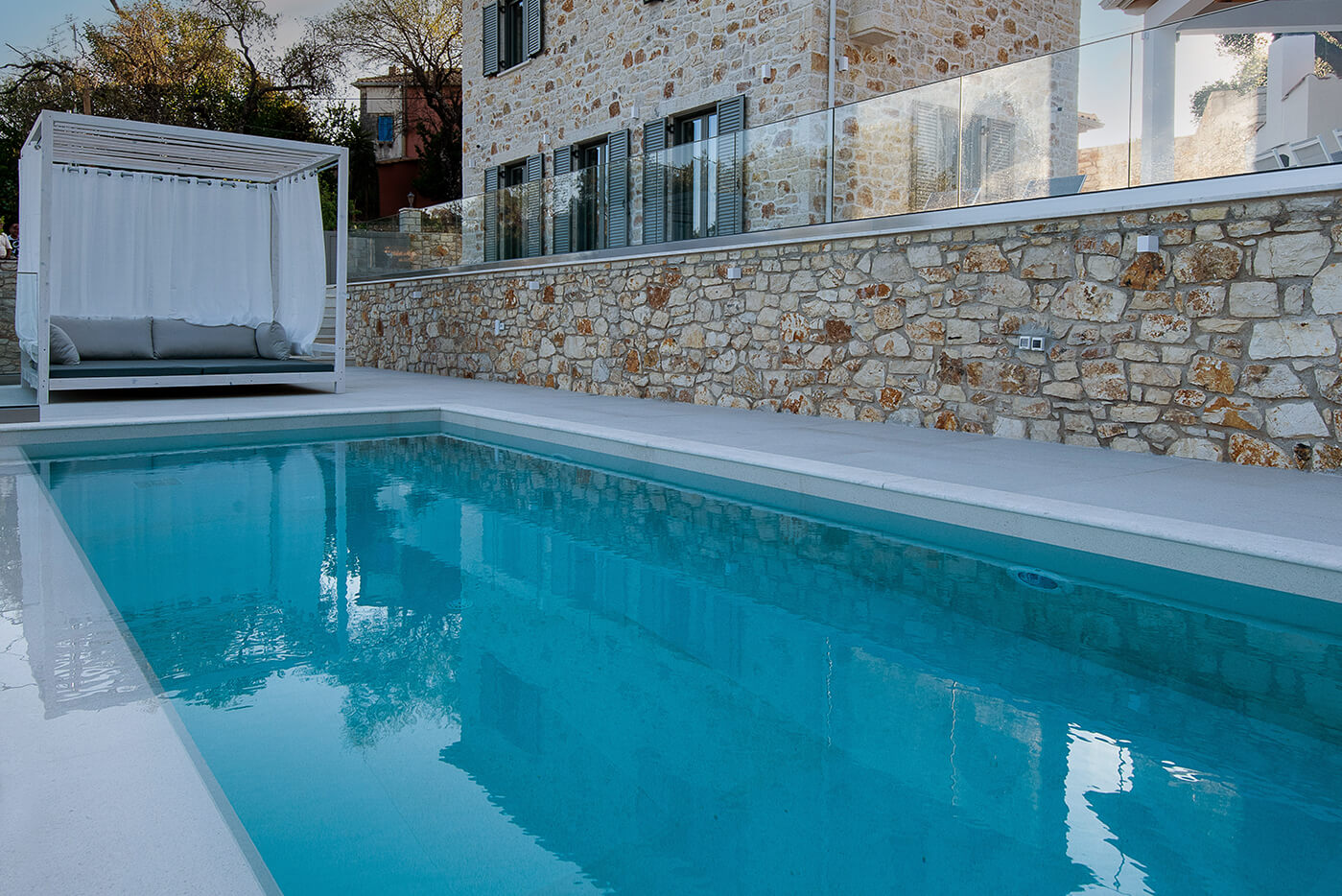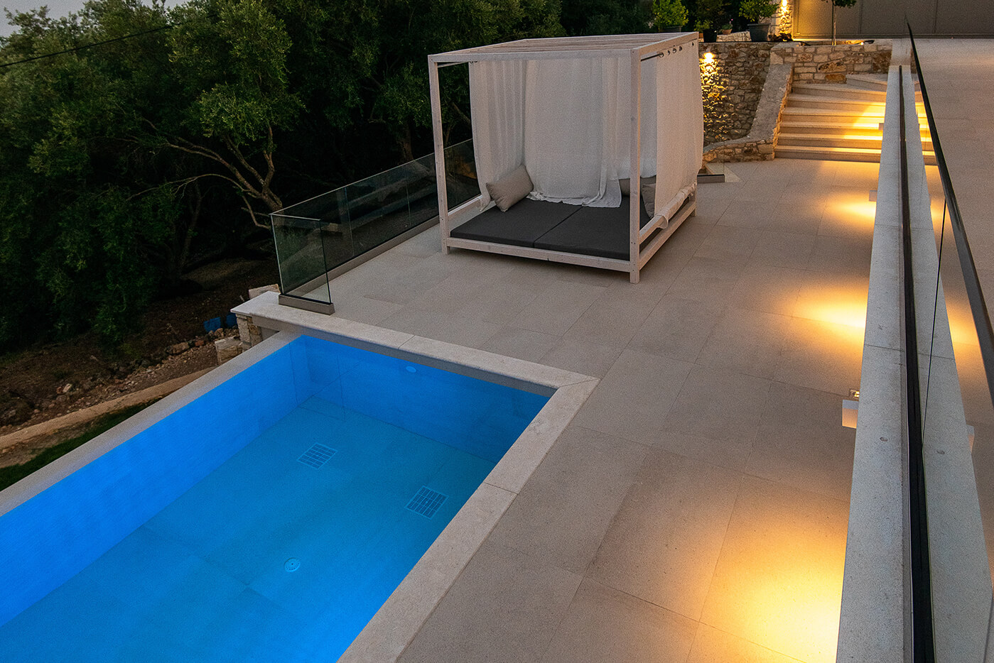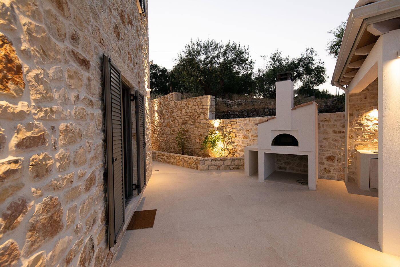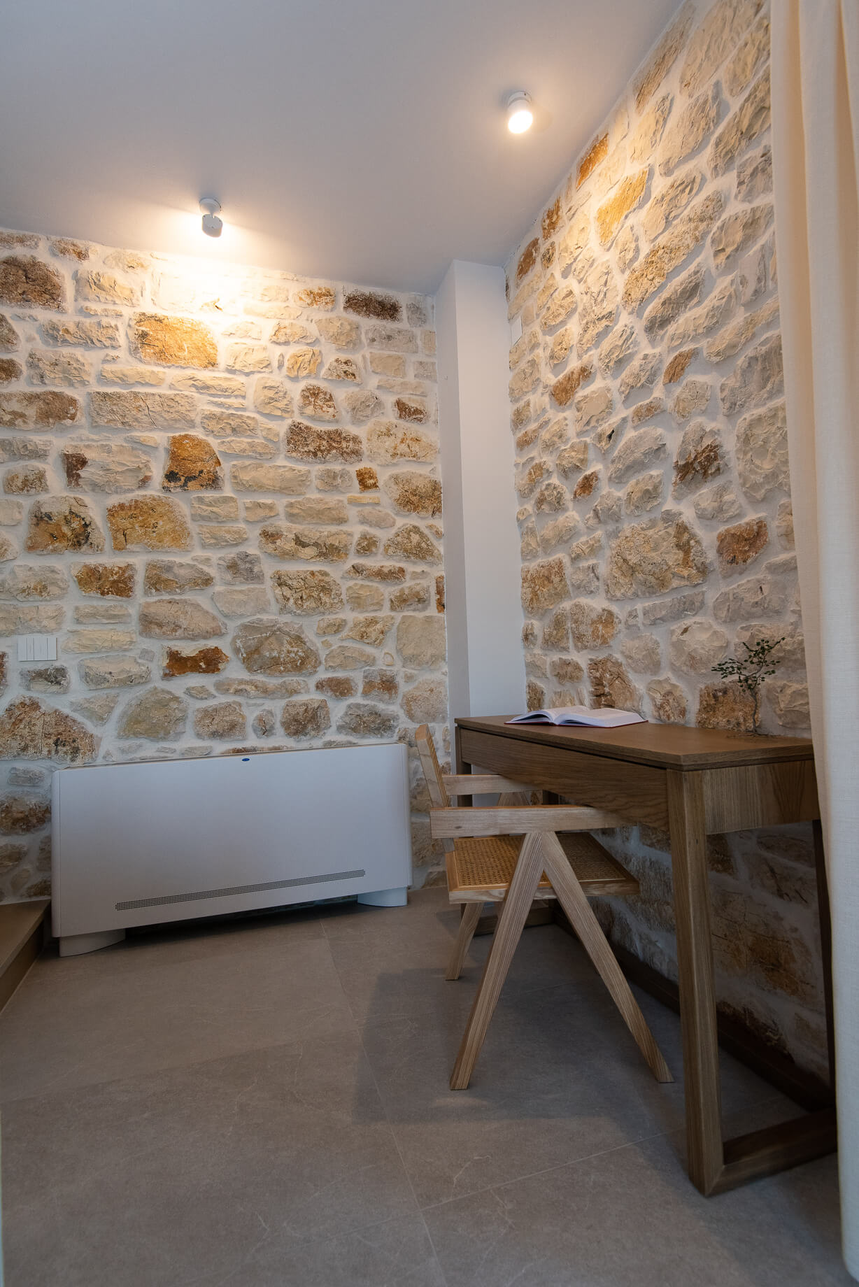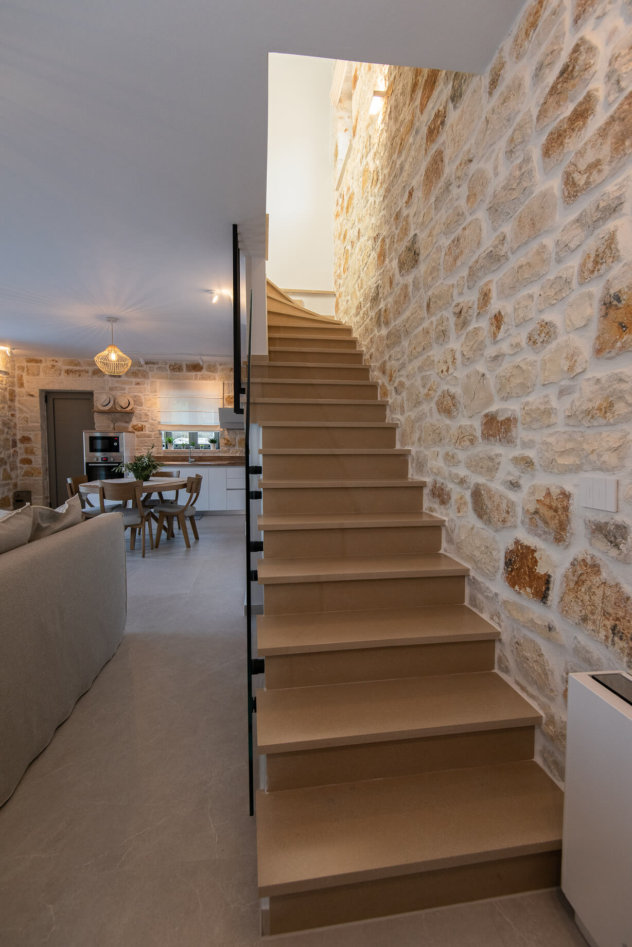 Σχεδιασμένο για να φιλοξενεί τους επισκέπτες με μια γυαλισμένη αλλά σπιτική απλότητα χάρη στην κυριαρχία της πέτρας. Σε εξωτερικούς χώρους, μια βεράντα πισίνας με ξαπλώστρες και ανάκλιντρο, μια στεγασμένη τραπεζαρία με μπάρμπεκιου και ξυλόφουρνο, καθώς και ένας όμορφος κήπος προσφέρουν μια εξαιρετική υπαίθρια εμπειρία διαβίωσης. Η βίλα είναι ιδανική για όποιον εκτιμά την ιδιωτικότητα καθώς και την ηρεμία. Designed to accommodate guests in a polished yet homey simplicity thanks to the predominance of stone. Outdoors, a pool terrace with sun loungers and a day bed, a covered dining area with BBQ and wood oven as well as a beautiful garden provide for an exceptional open-air living experience. The Villa is ideal for anyone who appreciates privacy as well as serenity.