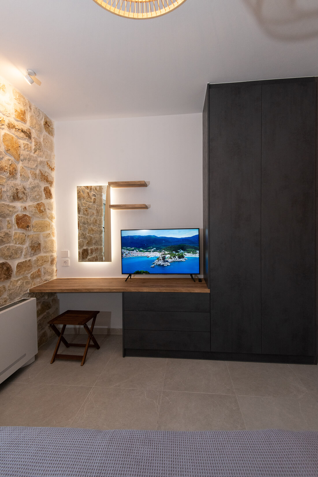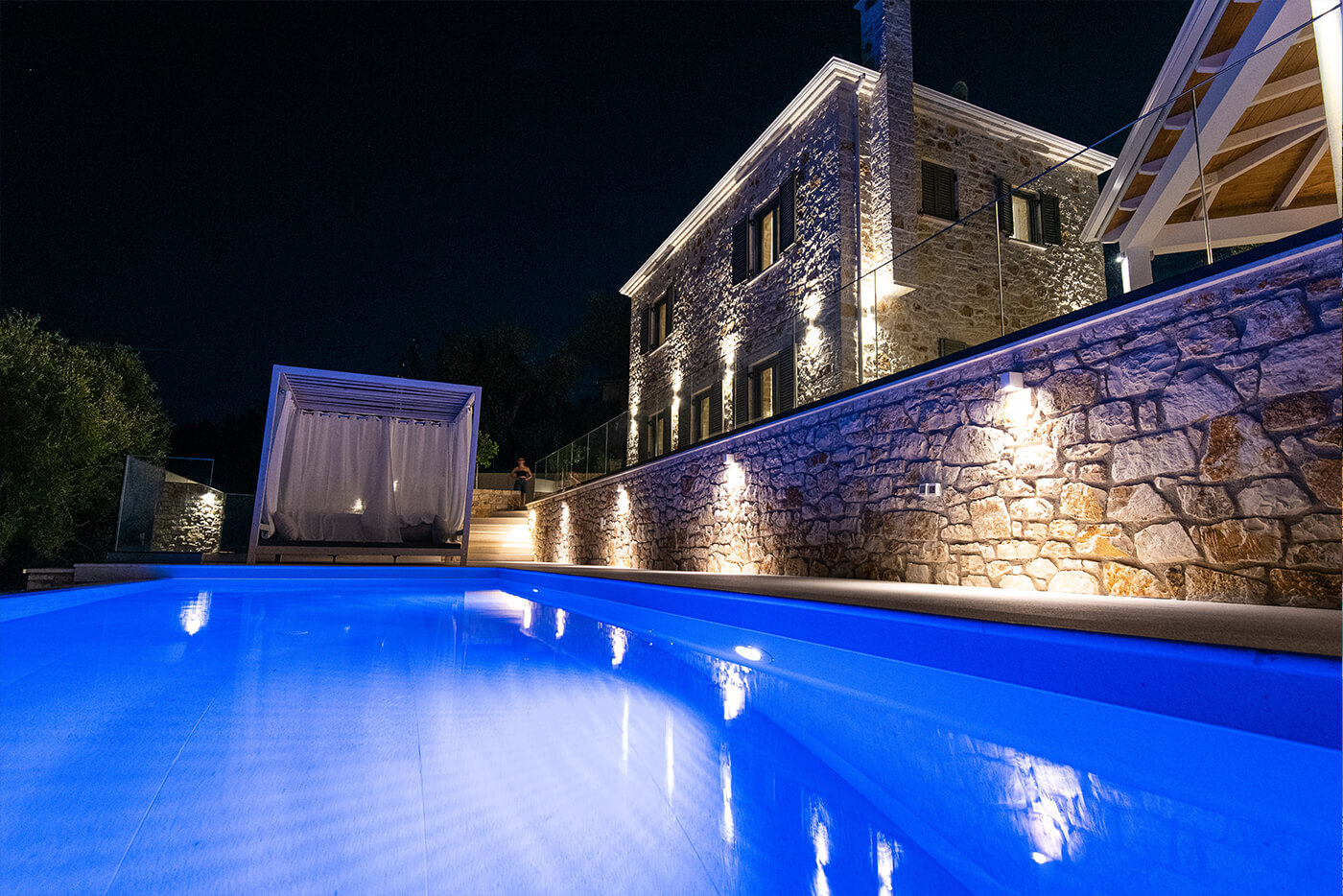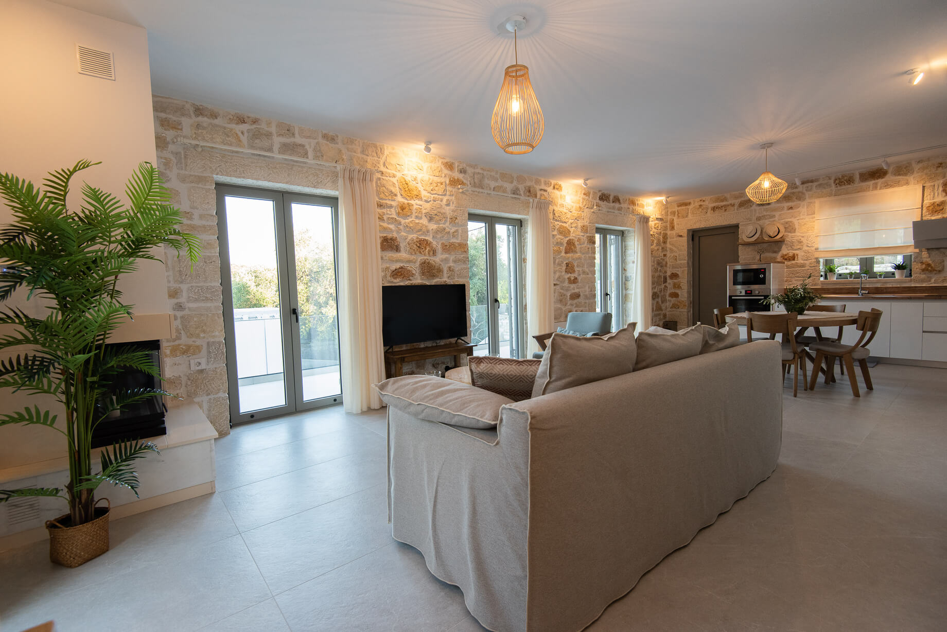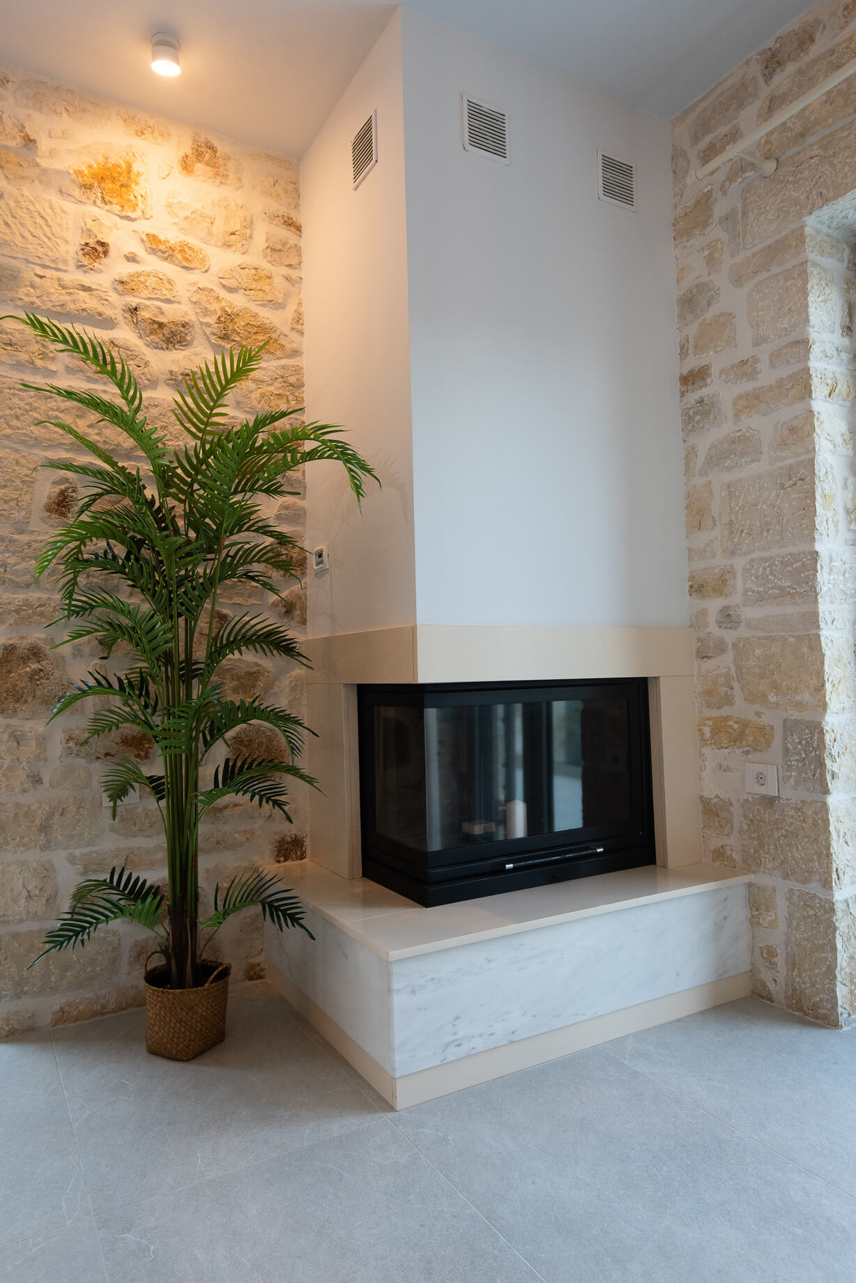 Σχεδιασμένο για να φιλοξενεί τους επισκέπτες με μια γυαλισμένη αλλά σπιτική απλότητα χάρη στην κυριαρχία της πέτρας. Σε εξωτερικούς χώρους, μια βεράντα πισίνας με ξαπλώστρες και ανάκλιντρο, μια στεγασμένη τραπεζαρία με μπάρμπεκιου και ξυλόφουρνο, καθώς και ένας όμορφος κήπος προσφέρουν μια εξαιρετική υπαίθρια εμπειρία διαβίωσης. Η βίλα είναι ιδανική για όποιον εκτιμά την ιδιωτικότητα καθώς και την ηρεμία. Designed to accommodate guests in a polished yet homey simplicity thanks to the predominance of stone. Outdoors, a pool terrace with sun loungers and a day bed, a covered dining area with BBQ and wood oven as well as a beautiful garden provide for an exceptional open-air living experience. The Villa is ideal for anyone who appreciates privacy as well as serenity.